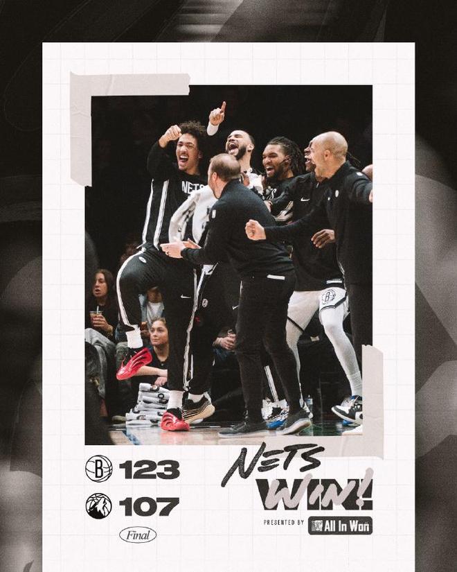 进入末节比赛,双方均是单节不超过25分,篮网持续压制森林狼拉开比分,篮网最多时刻扩大21分领先优势。森林狼已经无力扭转局势,在最后阶段森林狼有所反扑缩小差距,最终森林狼爆冷107-123输给篮网,篮网收获3连胜。
