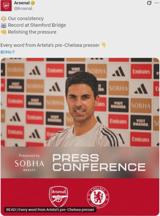 阿尔特塔出席了赛前新闻发布会,我们来看关键问题。